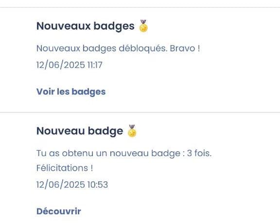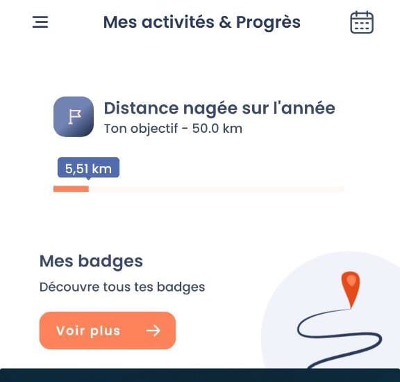 Les badges sont accessibles depuis cette page. Votre calendrier aussi en cliquant sur l’icône en haut à droite.