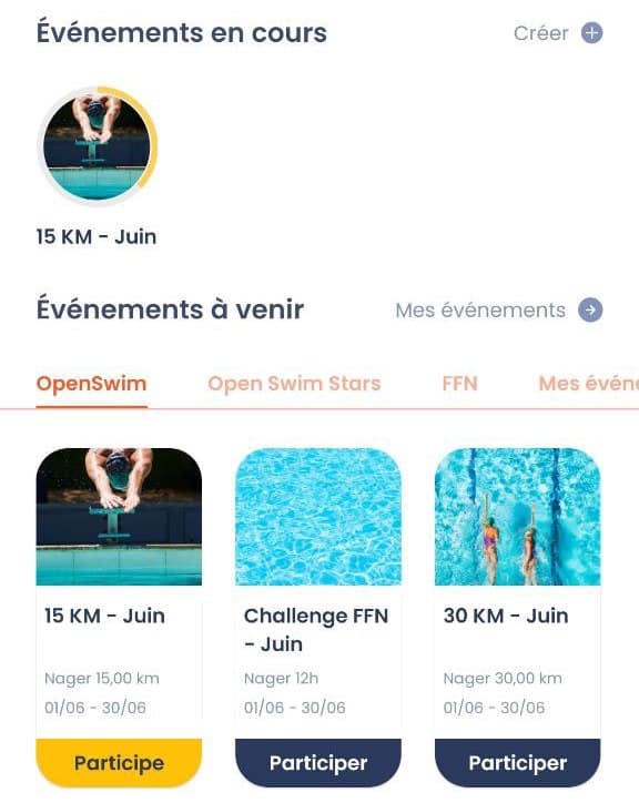 Nos événements et nos challenges virtuels sont plus facilement accessibles, avec l’onglet 4 qui devient Événements.